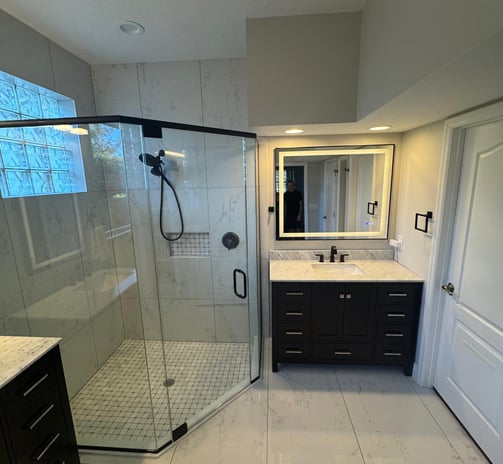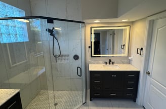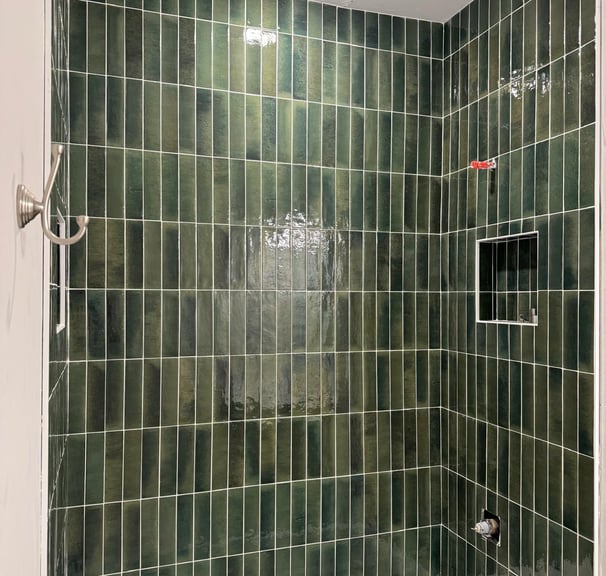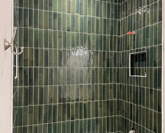 We are excited to reveal our latest bathroom renovation featuring a stunning tub elegantly framed by lush green tiles. This design not only elevates the aesthetic appeal but also creates a tranquil sanctuary for relaxation and rejuvenation.