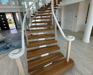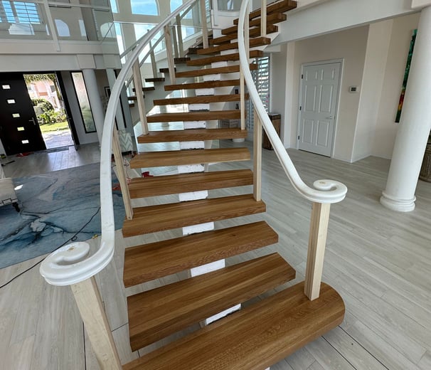 We are thrilled to showcase our latest project: a stunning curved floating staircase that not only enhances the beauty of the space but also reflects our team's exceptional craftsmanship. This design seamlessly integrates modern aesthetics with functional elegance, creating a stunning focal point in any home.